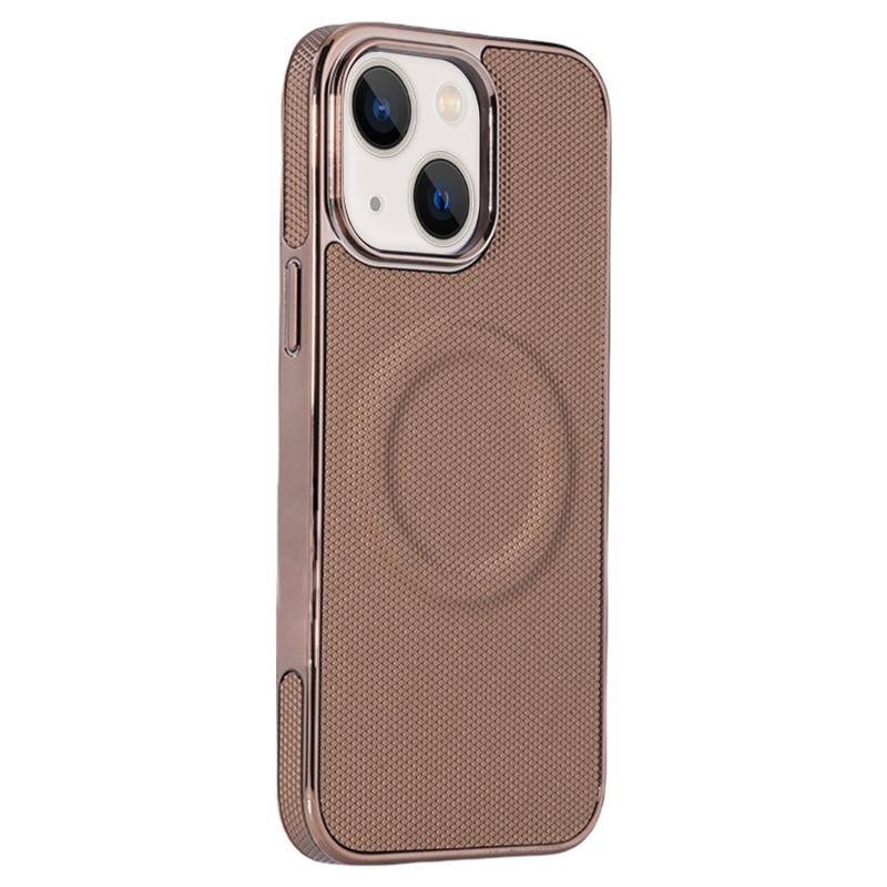 For iPhone 13 Electroplating Soft Side Sticker Leather MagSafe Phone Case(Gold)