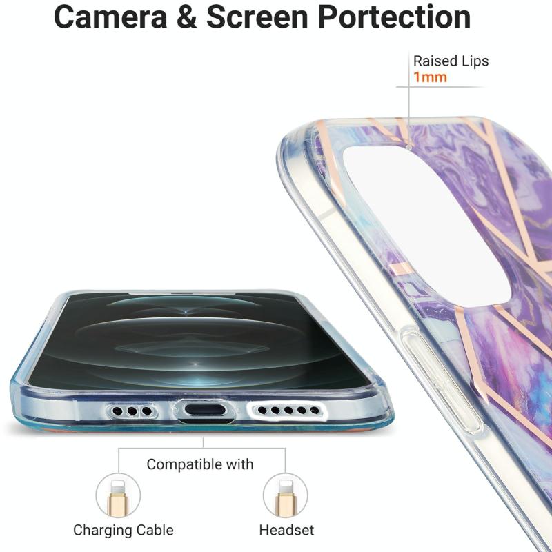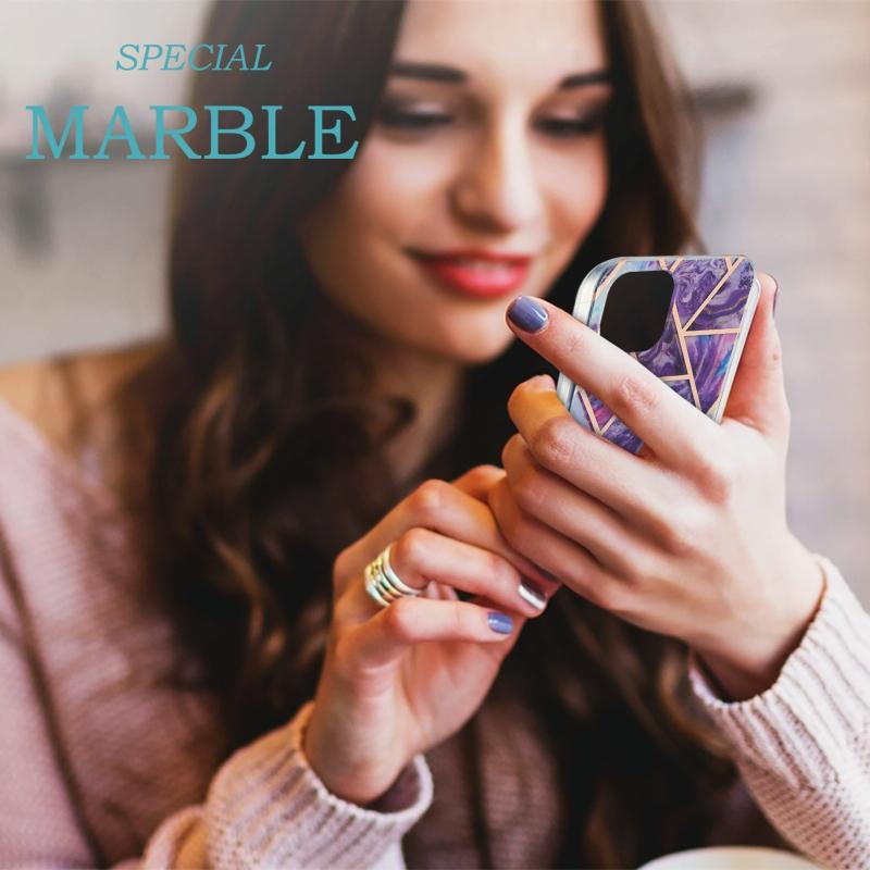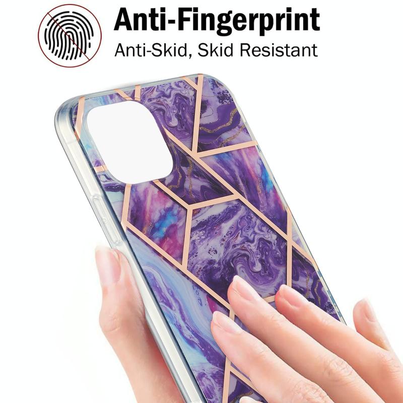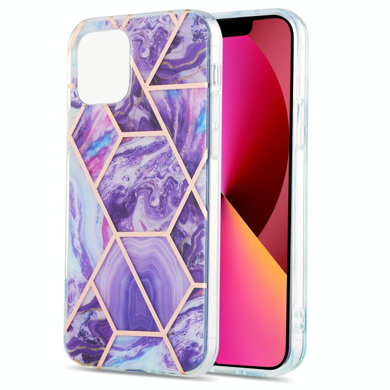 For iPhone 13 Electroplating Splicing Marble Flower Pattern Dual-side IMD TPU Shockproof Case(Dark Purple)