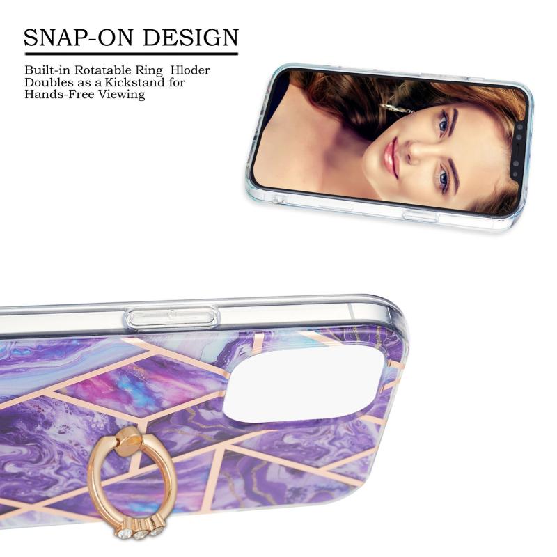 For iPhone 13 Electroplating Splicing Marble Pattern Dual-side IMD TPU Shockproof Case with Ring Holder(Dark Purple)
