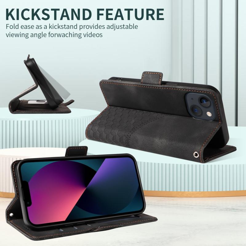 For iPhone 13 Embossed Rhombus Starry Leather Phone Case(Black)