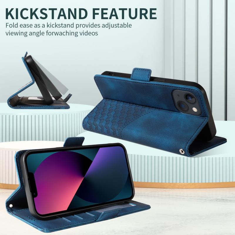 For iPhone 13 Embossed Rhombus Starry Leather Phone Case(Blue)