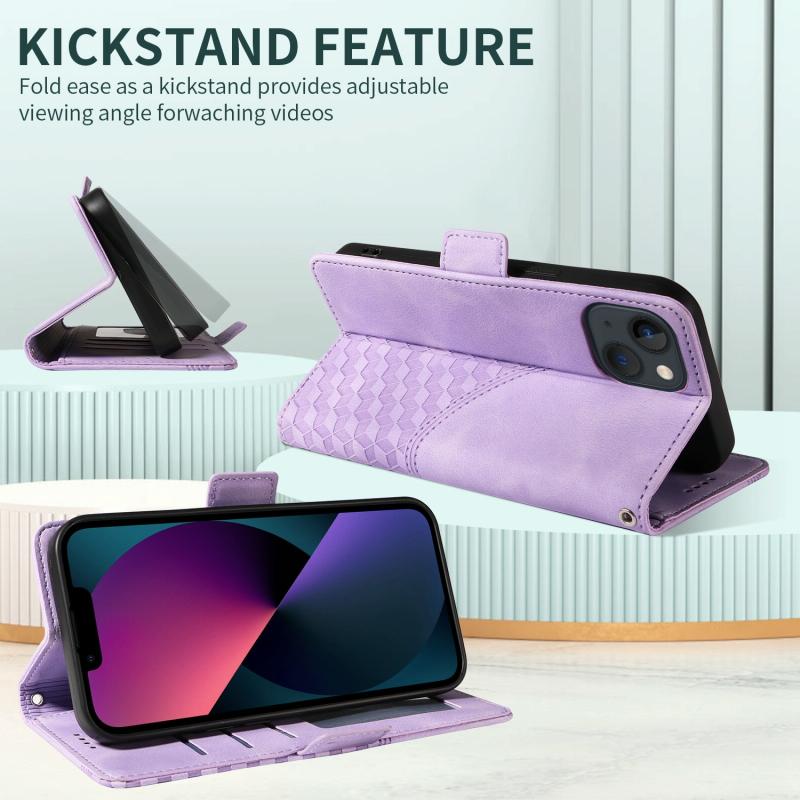 For iPhone 13 Embossed Rhombus Starry Leather Phone Case(Purple)