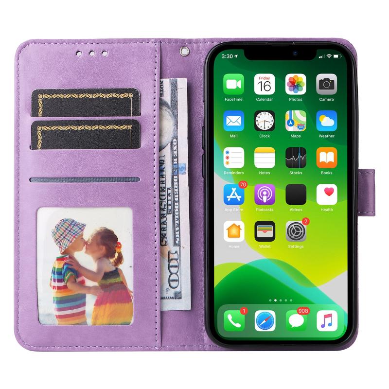 For iPhone 13 Embossed Sunflower Leather Phone Case(Purple)