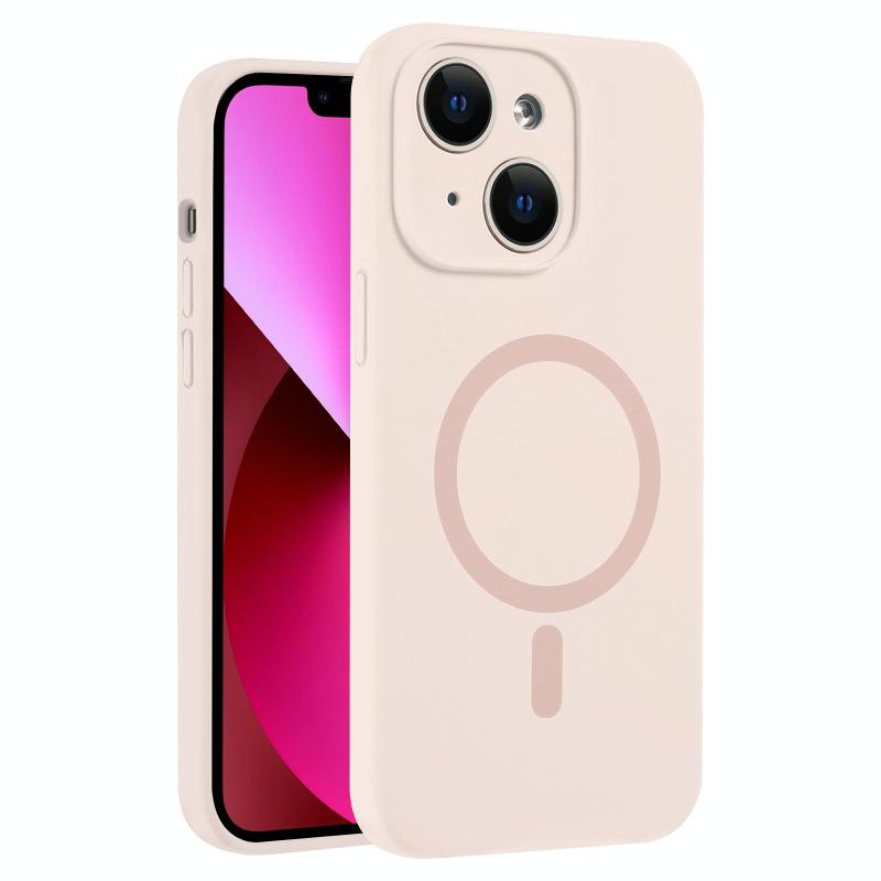 For iPhone 13 Fine Hole Pure Color Liquid Silicone MagSafe Phone Case(Pink)