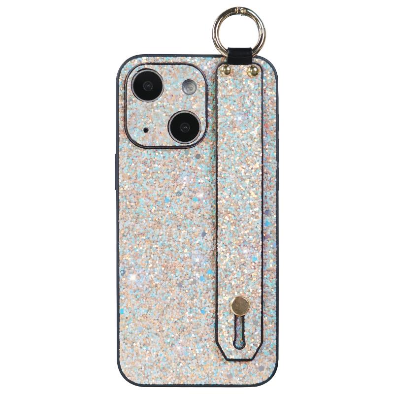 For iPhone 13 Flash Diamond Wristband Holder Phone Case(Flash Gold)
