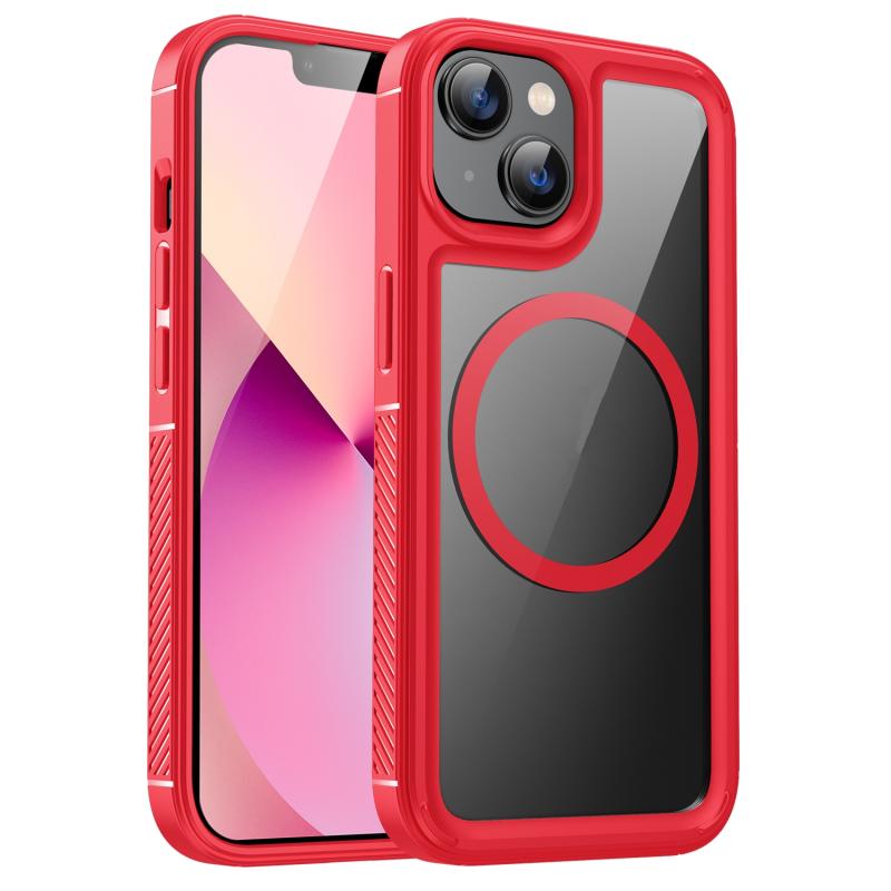 For iPhone 13 Forerunner Shockproof Acrylic Hybrid TPU Magsafe Phone Case(Red)