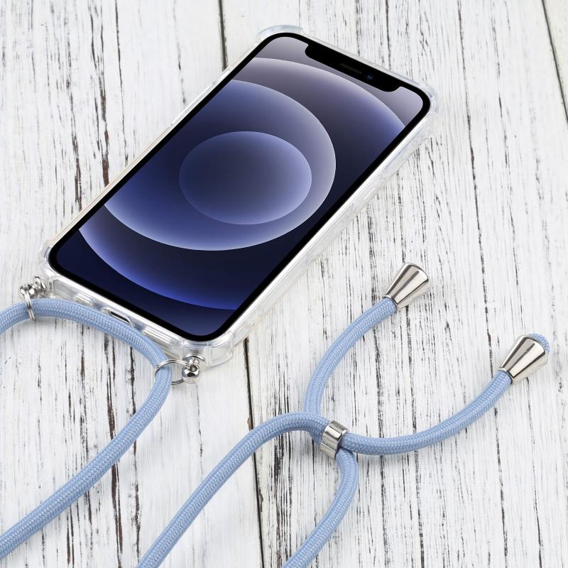 For iPhone 13 Four-corner Shockproof Transparent TPU Protective Case with Lanyard(Blue Grey)