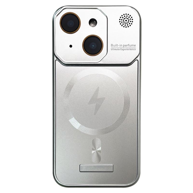 For iPhone 13 Frameless Aromatherapy MagSafe Magnetic PC Phone Case(Titanium Silver)
