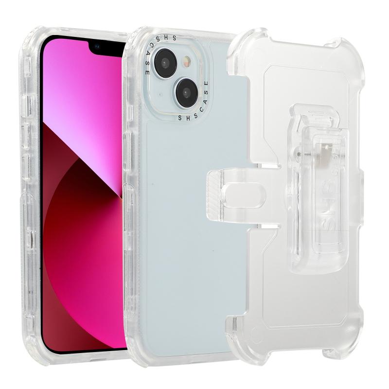 For iPhone 13 Frosted PC+TPU Phone Case with Back Clip(White)