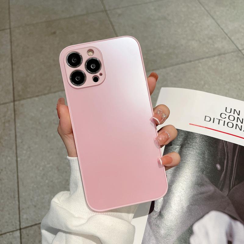 For iPhone 13 Frosted Tempered Glass Phone Case(Pink)