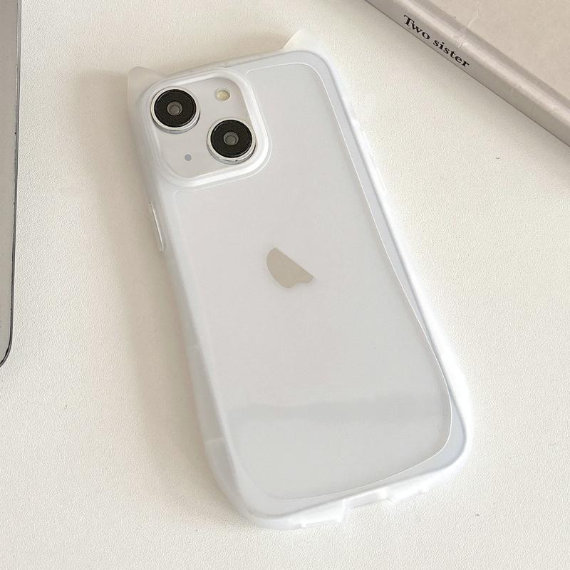 For iPhone 13 Frosted Transparent Cat Head TPU Phone Case(White)