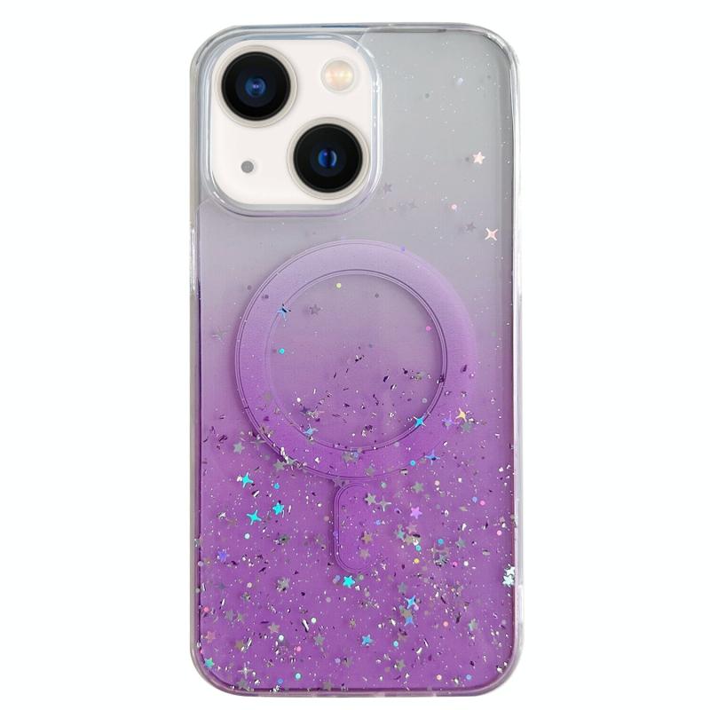 For iPhone 13 Glitter MagSafe Hybrid Clear TPU Phone Case(Purple)