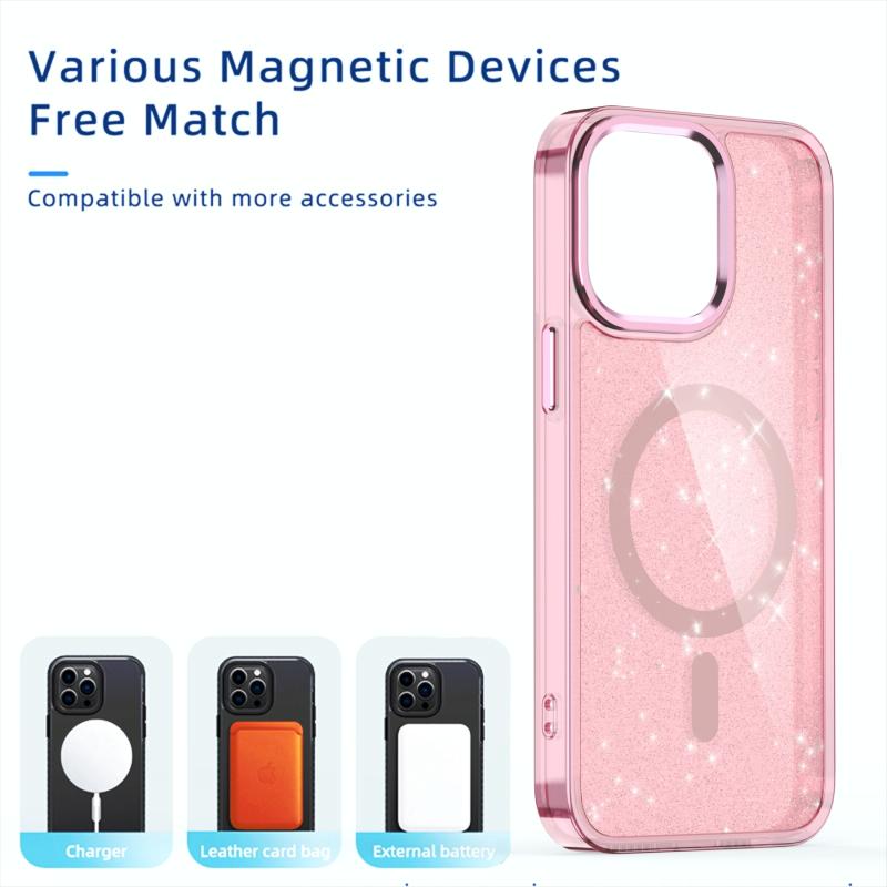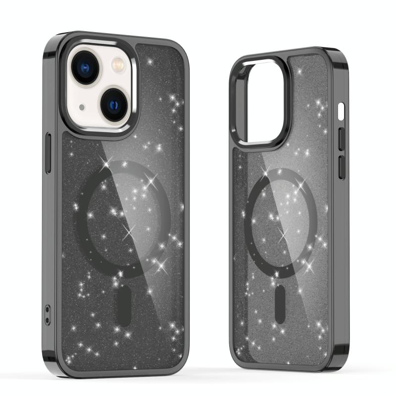For iPhone 13 Glitter MagSafe Shockproof Phone Case(Black)