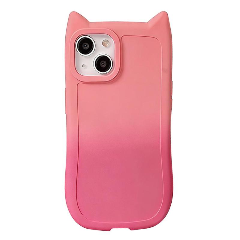 For iPhone 13 Gradient Cat Ear Design TPU Phone Case(Pink Rose Red)