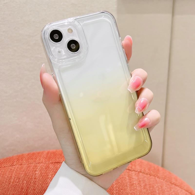 For iPhone 13 Gradient Electroplated Button Space Phone Case(Yellow)