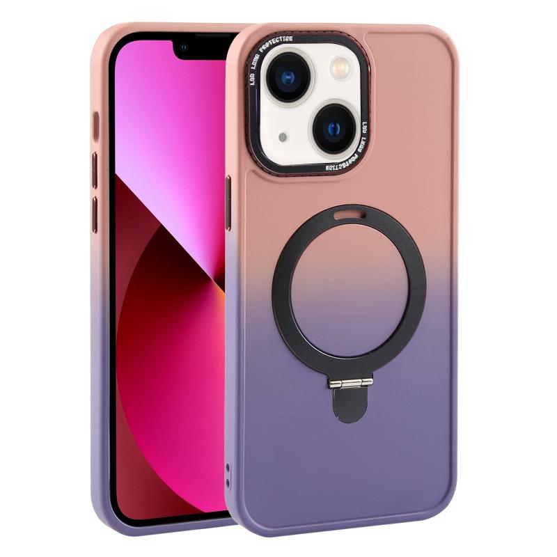 For iPhone 13 Gradient MagSafe Holder Liquid TPU Hybrid PC Phone Case(Pink Purple)