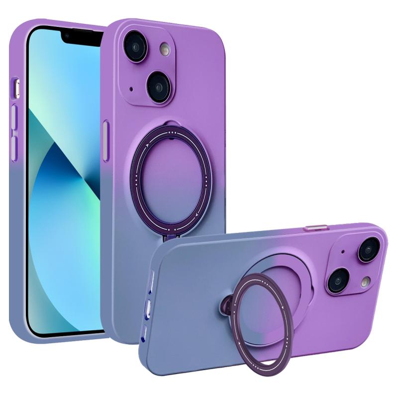 For iPhone 13 Gradient TPU MagSafe Holder Phone Case(Deep Purple Gray)
