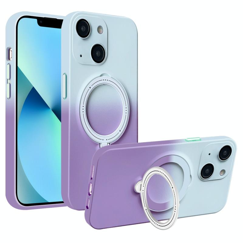 For iPhone 13 Gradient TPU MagSafe Holder Phone Case(Gray Purple)