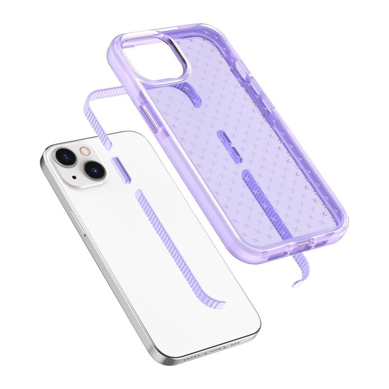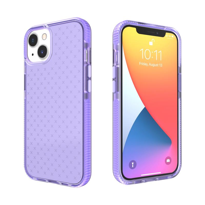 For iPhone 13 Grid Pattern Shockproof Transparent TPU Phone Case(Purple)