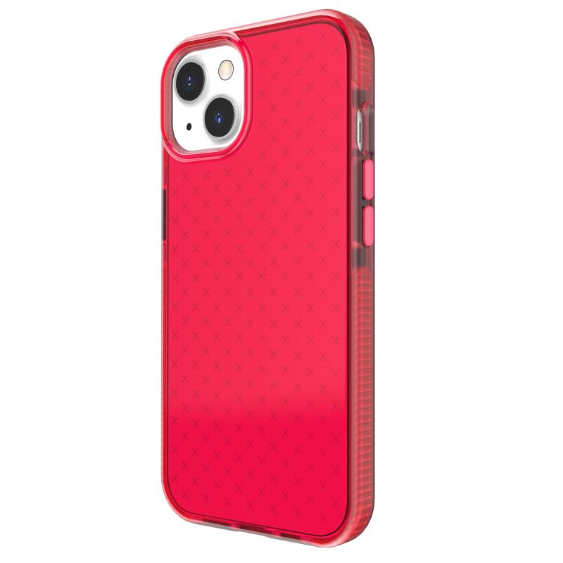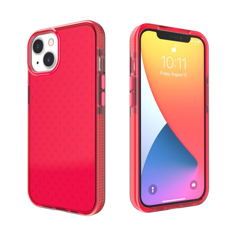 For iPhone 13 Grid Pattern Shockproof Transparent TPU Phone Case(Red)