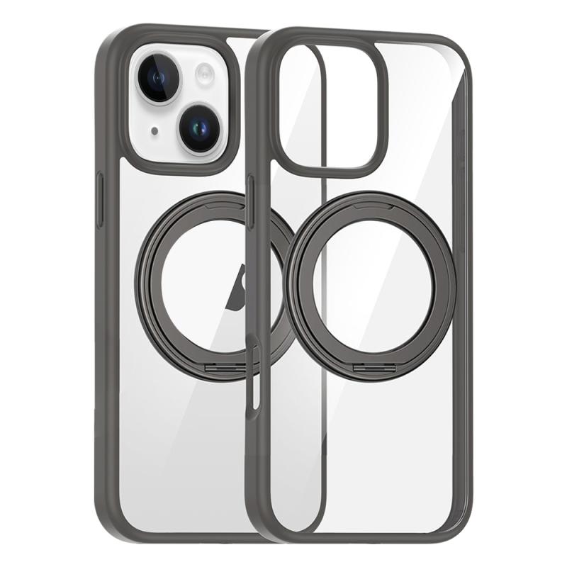 For iPhone 13 High Transparency 360 Degree Rotating Holder MagSafe Phone Case(Titanium Gray)