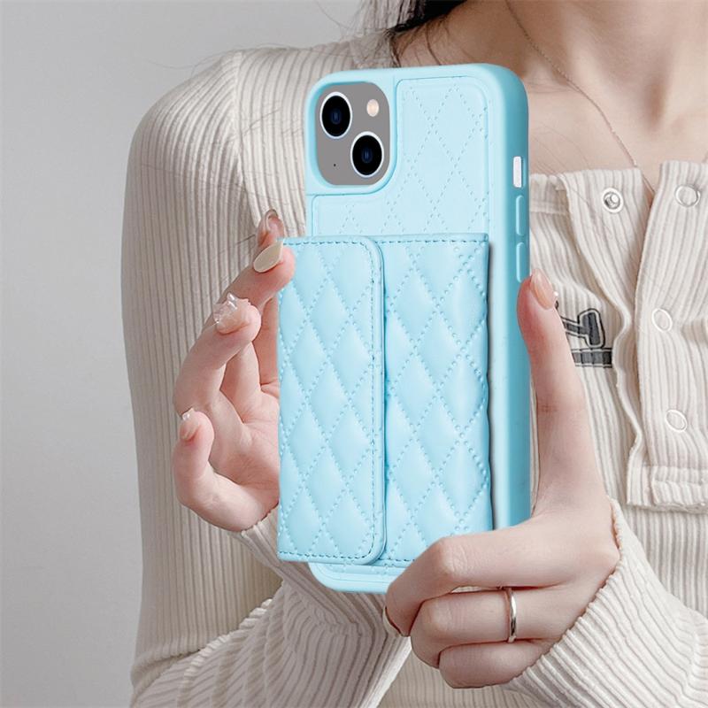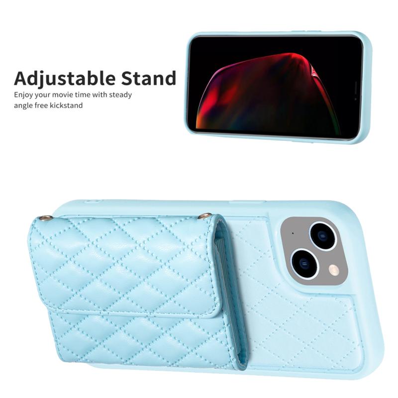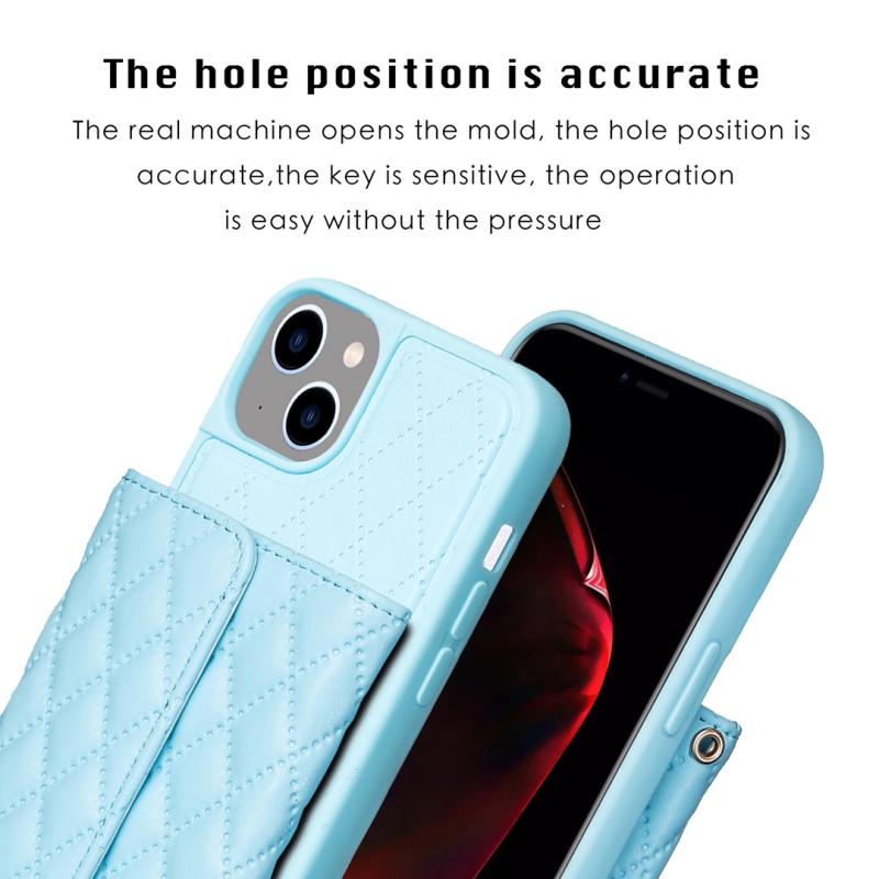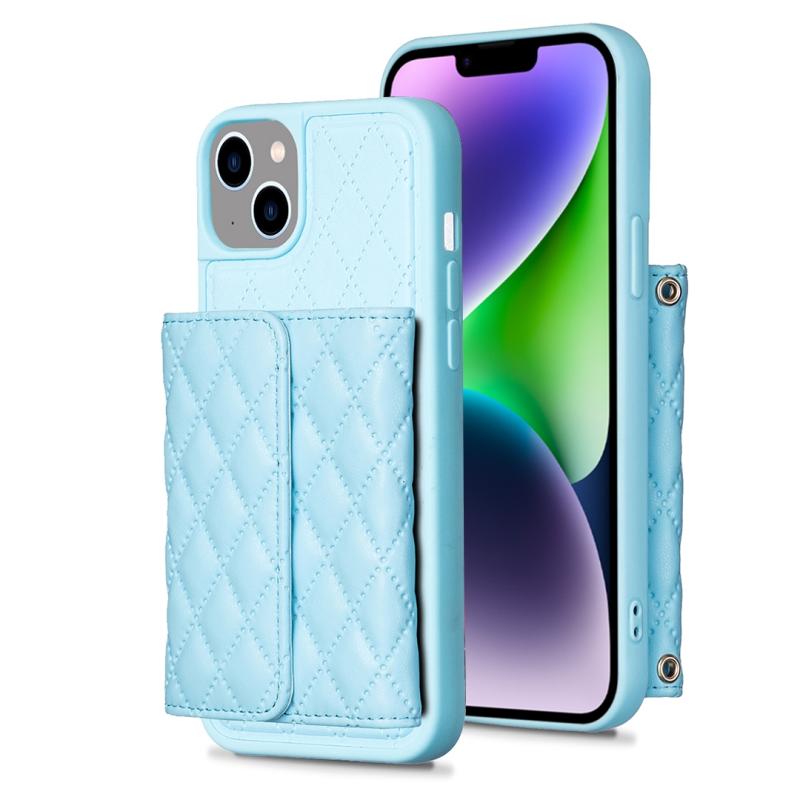 For iPhone 13 Horizontal Wallet Rhombic Leather Phone Case(Blue)