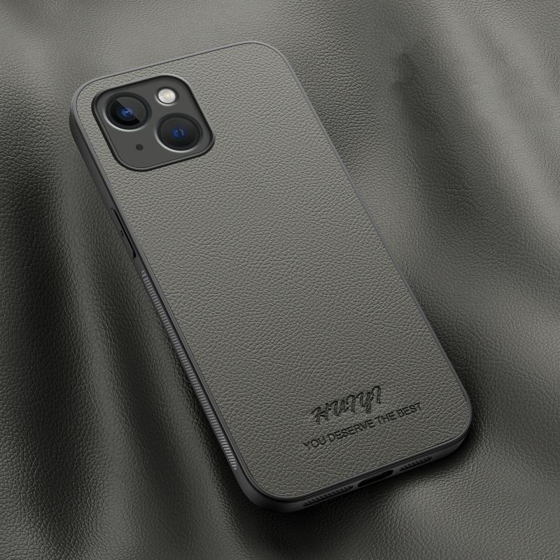 For iPhone 13 HUIYI Leather Magnetic Phone Case(Grey)