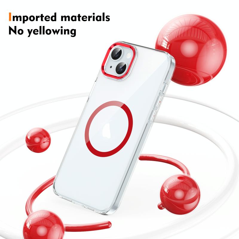 For iPhone 13 Ice Feel HD Transparent MagSafe PC Full Coverage Phone Case(Red)