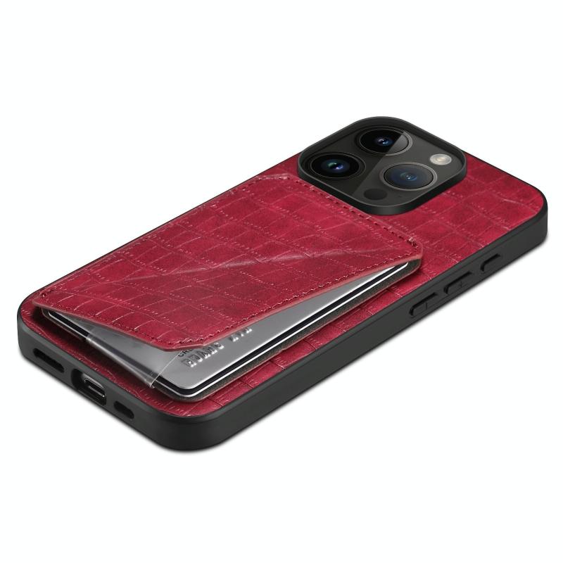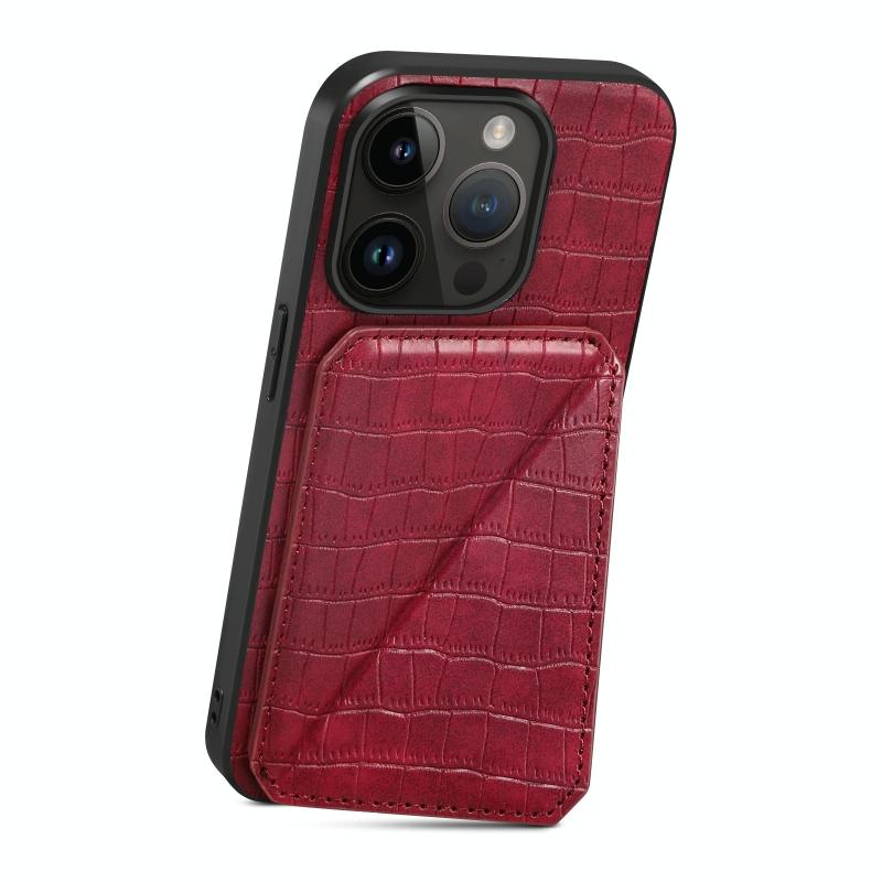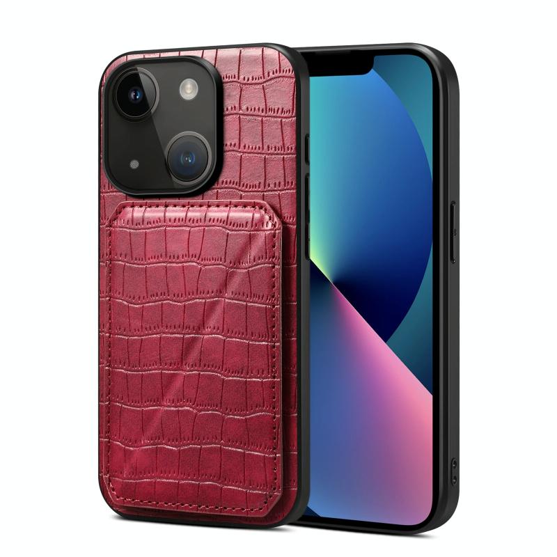 For iPhone 13 Imitation Crocodile Leather Back Phone Case with Holder(Rose Red)