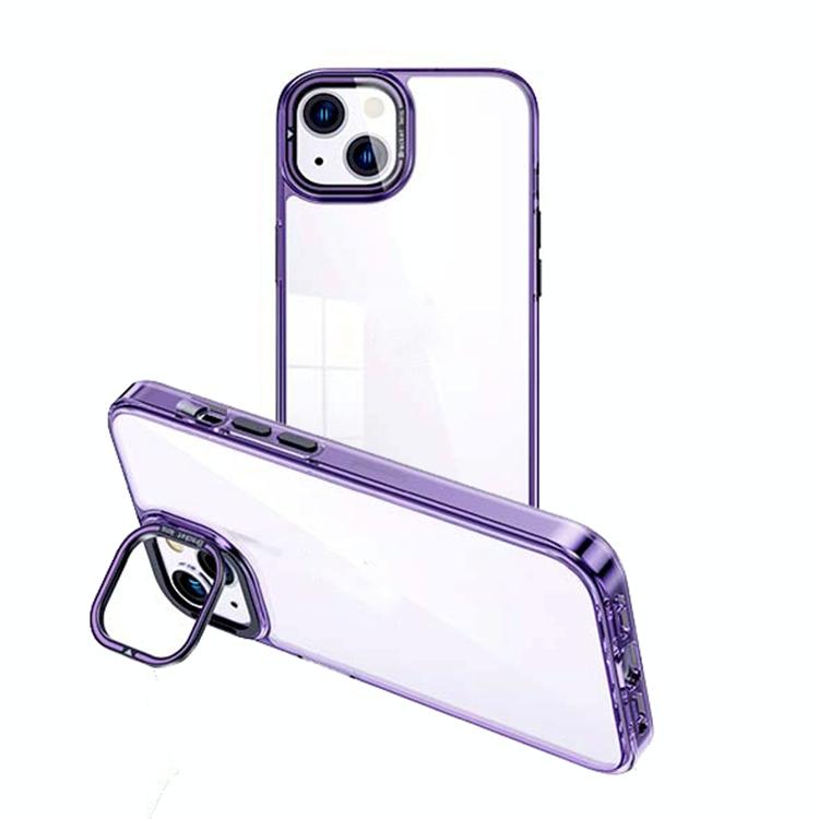 For iPhone 13 Invisible Camera Holder Transparent Phone Case(Purple)