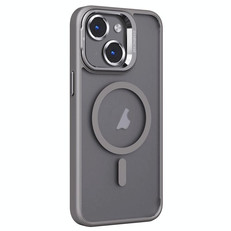 For iPhone 13 Invisible Lens Holder PC + TPU Frosted MagSafe Phone Case(Gray)