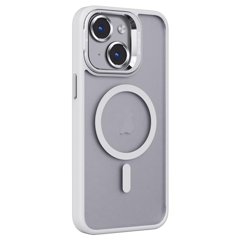 For iPhone 13 Invisible Lens Holder PC + TPU Frosted MagSafe Phone Case(White)