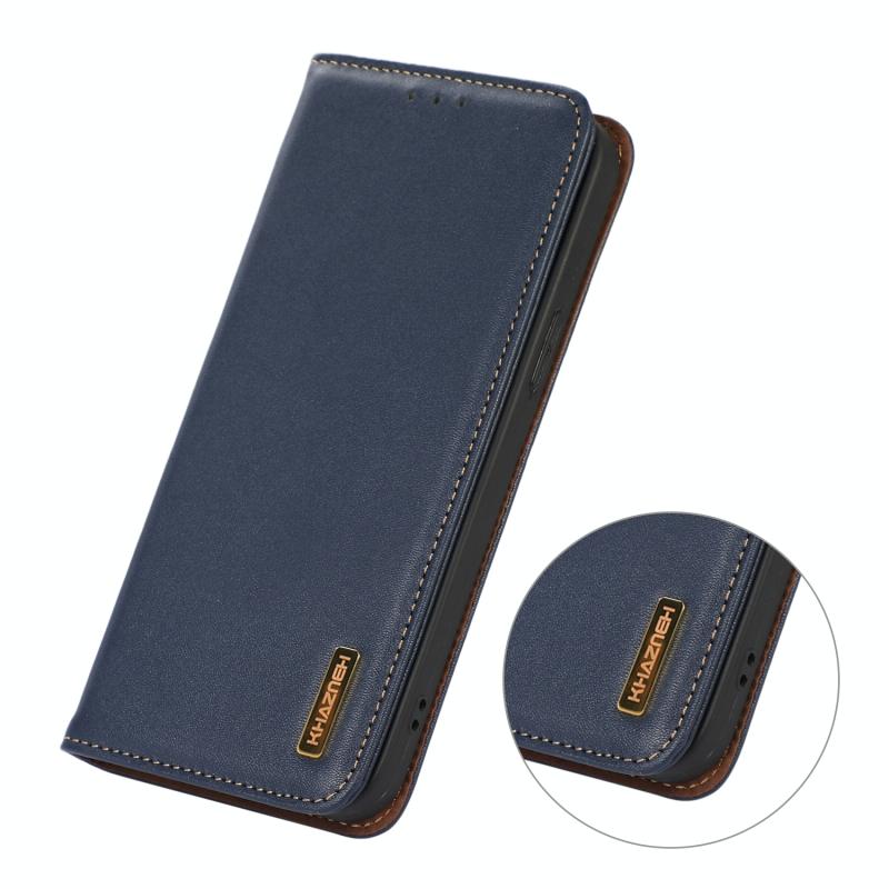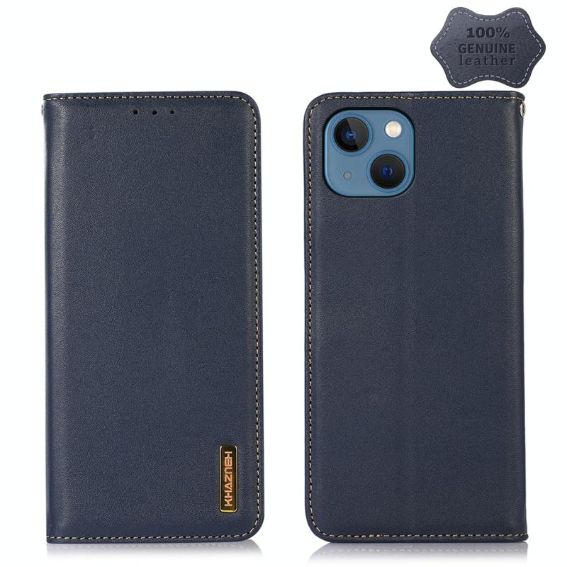 For iPhone 13 KHAZNEH Nappa Top Layer Cowhide Leather Phone Case(Blue)