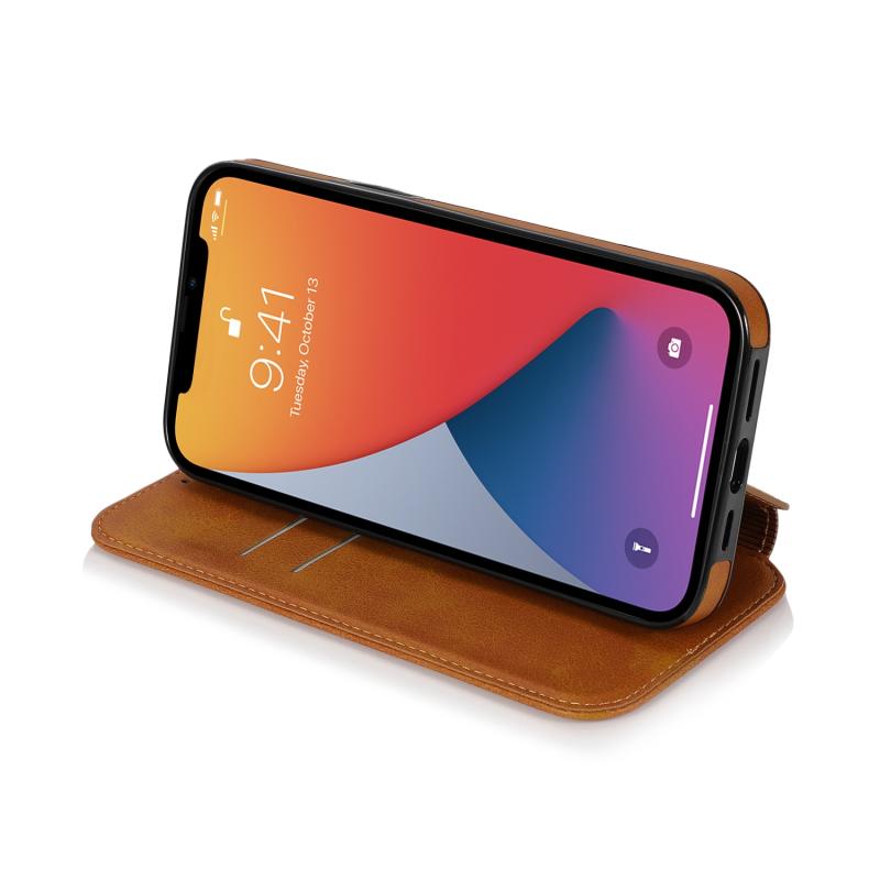 For iPhone 13 Knight Magnetic Suction Leather Phone Case(Khaki)