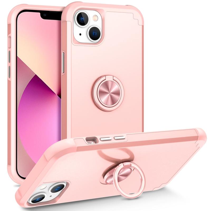 For iPhone 13 L2 Rotating Ring Holder Magnetic Phone Case(Rose Gold)