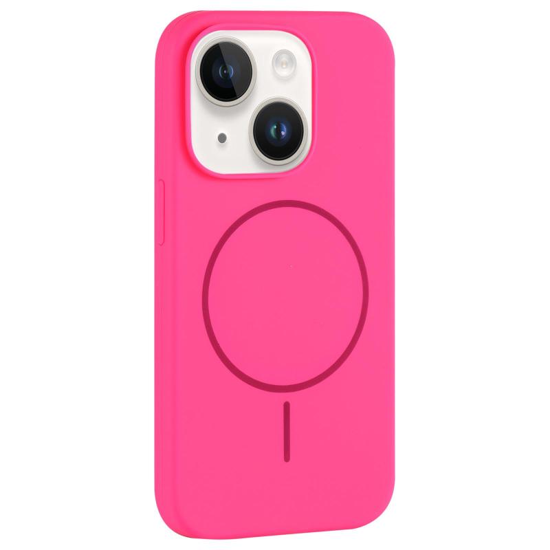 For iPhone 13 Large Hole Camera MagSafe Liquid Silicone Full Coverage Phone Case(Rose Red)