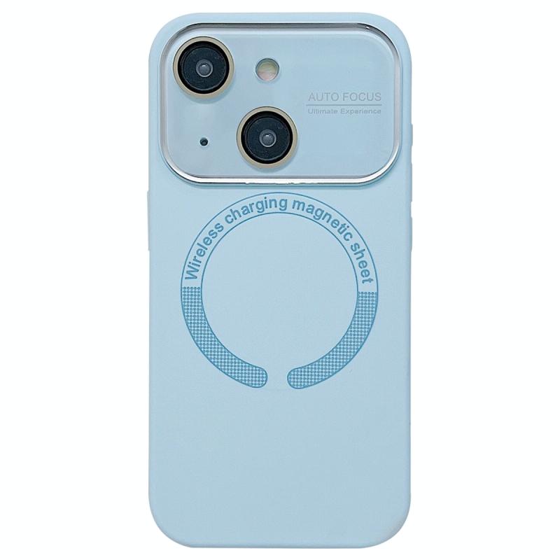 For iPhone 13 Large Window Acrylic Glass Lens MagSafe Silicone Phone Case(Far Peak Blue)