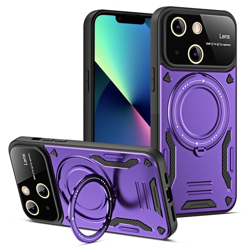 For iPhone 13 Large Window MagSafe Holder Phone Case(Purple)