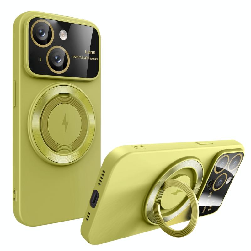For iPhone 13 Large Window MagSafe Magnetic Holder Phone Case(Avocado Green)