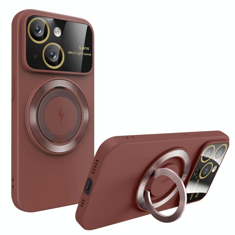 For iPhone 13 Large Window MagSafe Magnetic Holder Phone Case(Claret Red)
