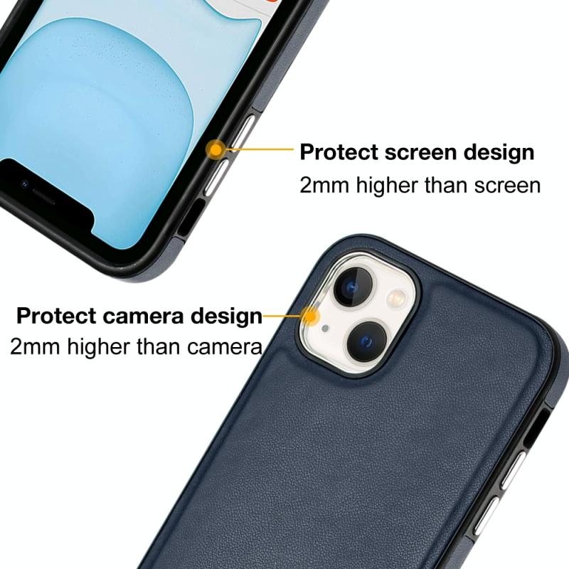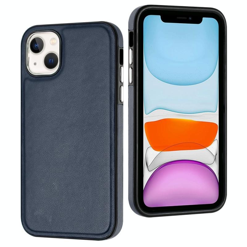 For iPhone 13 Leather Texture Full Coverage Phone Case(Blue)