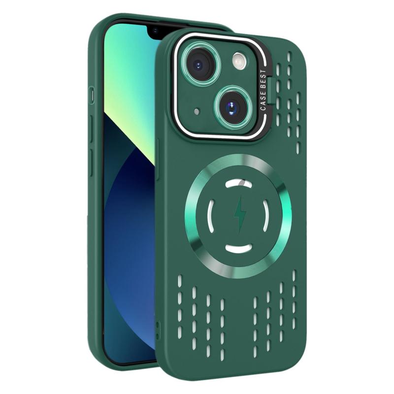 For iPhone 13 Lens Holder MagSafe Cooling Phone Case(Dark Green)