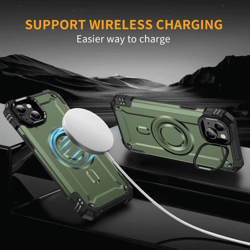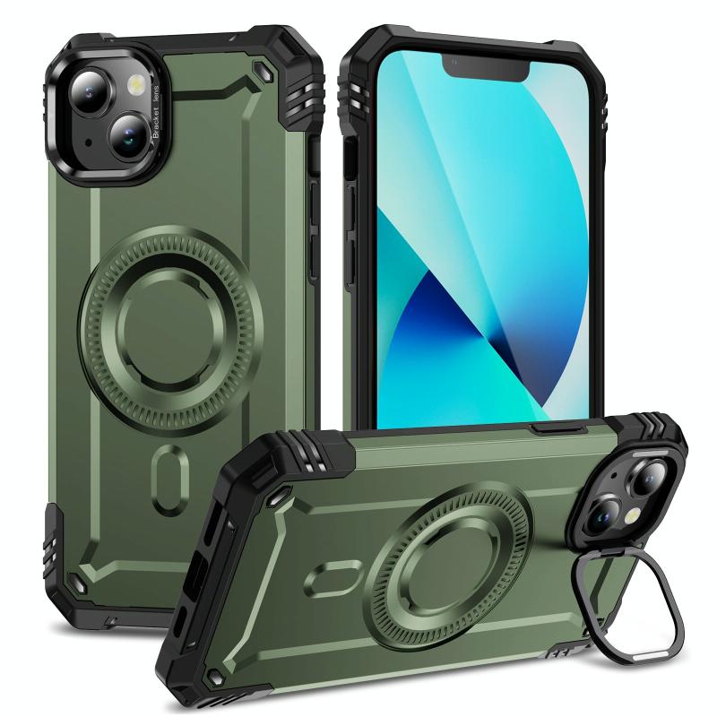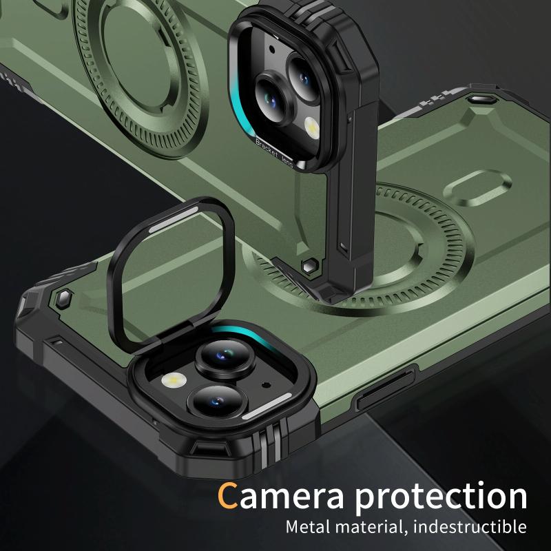 For iPhone 13 Lens Holder MagSafe Phone Case(Army Green)