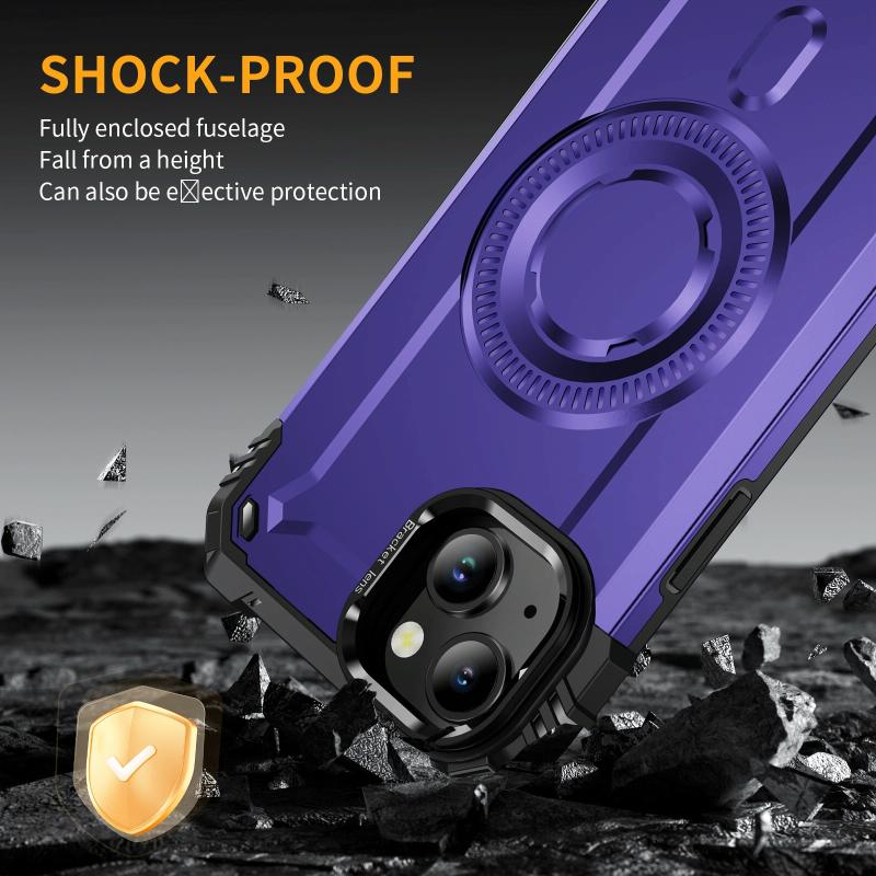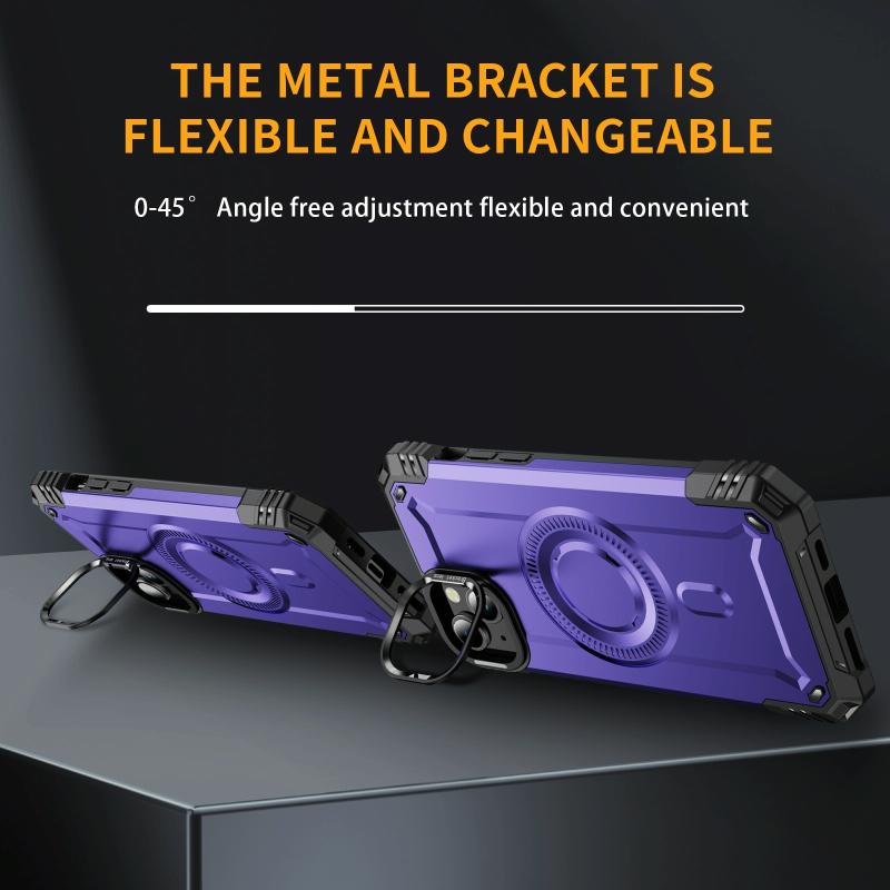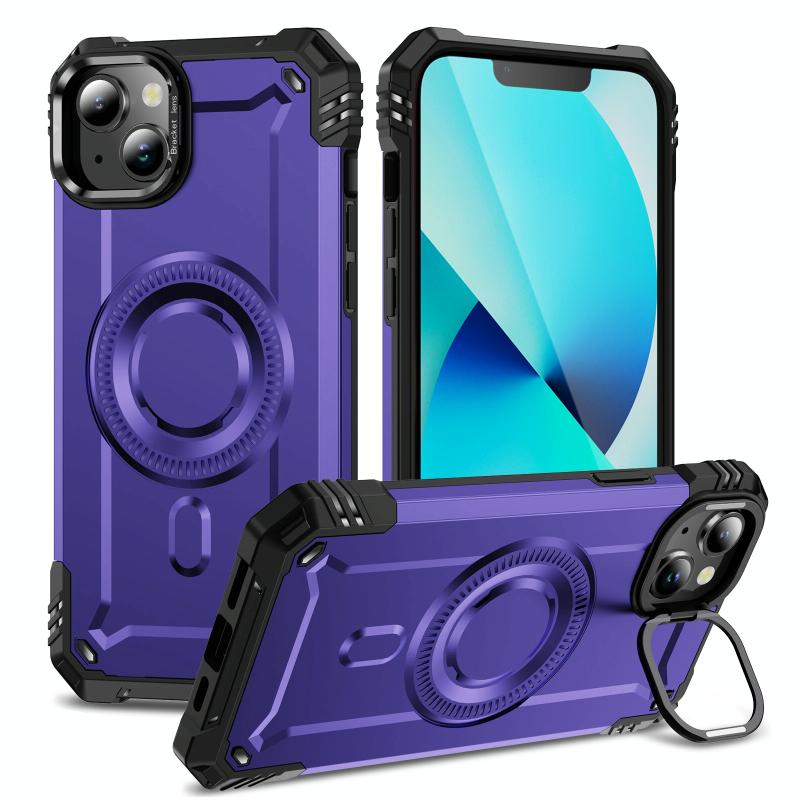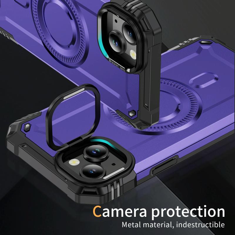 For iPhone 13 Lens Holder MagSafe Phone Case(Purple)