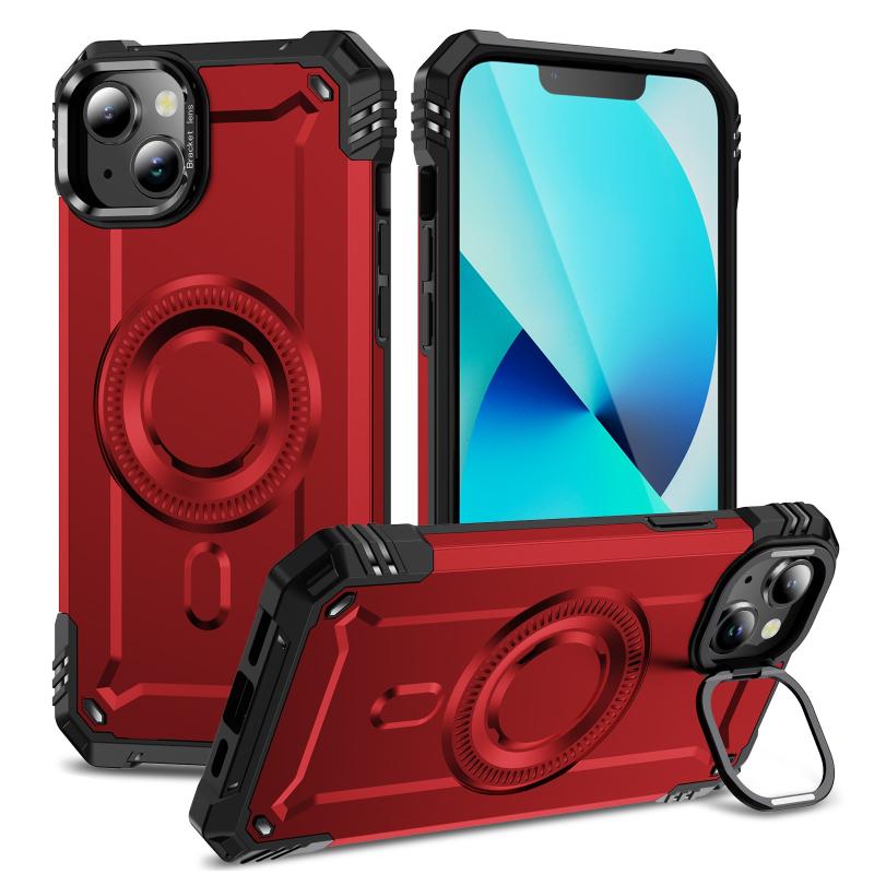 For iPhone 13 Lens Holder MagSafe Phone Case(Red)