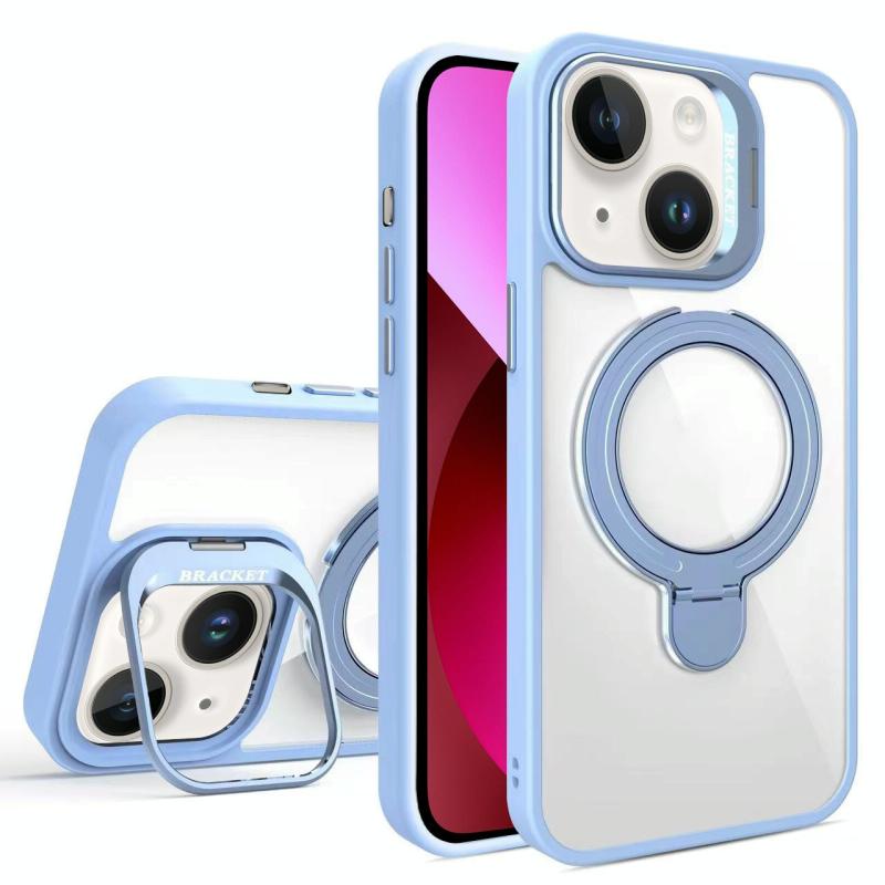 For iPhone 13 Lens Protection & Ring Bracket MagSafe Phone Case(Sierra Blue)