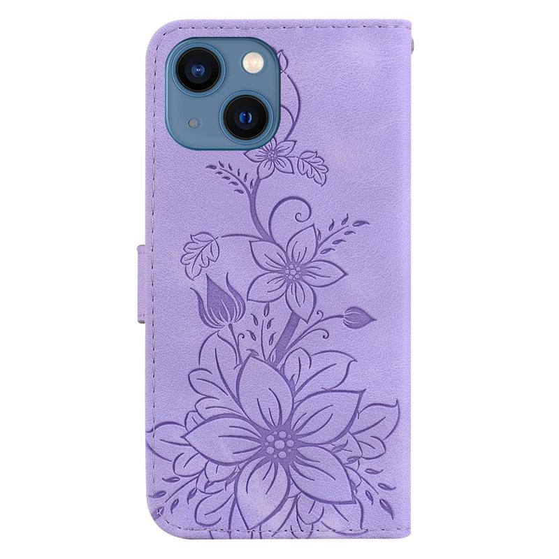For iPhone 13 Lily Embossed Leather Phone Case(Purple)