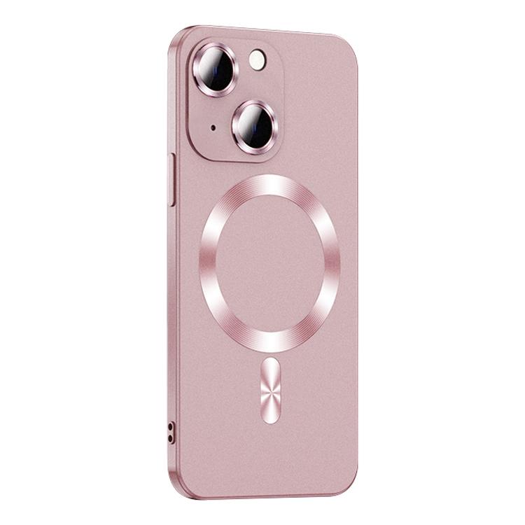 For iPhone 13 Liquid Lens Protector Magsafe Phone Case(Gold Pink)