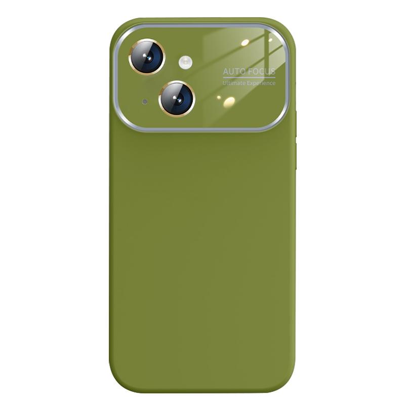 For iPhone 13 Liquid Silicone Large Glass Window Phone Case(Green)