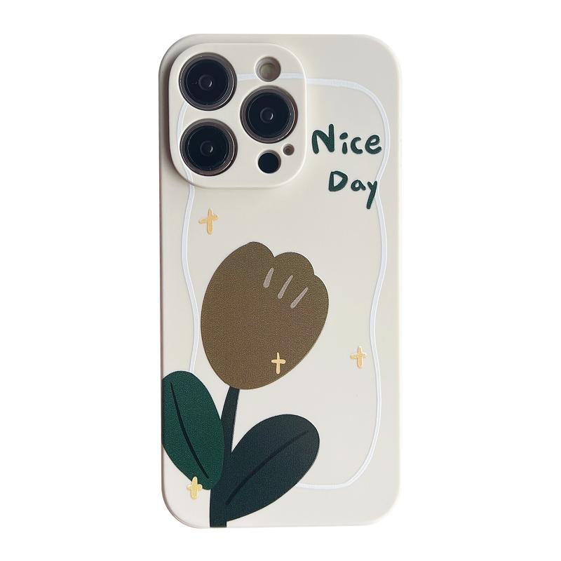 For iPhone 13 Liquid Silicone Straight Edge Phone Case(Tulip)